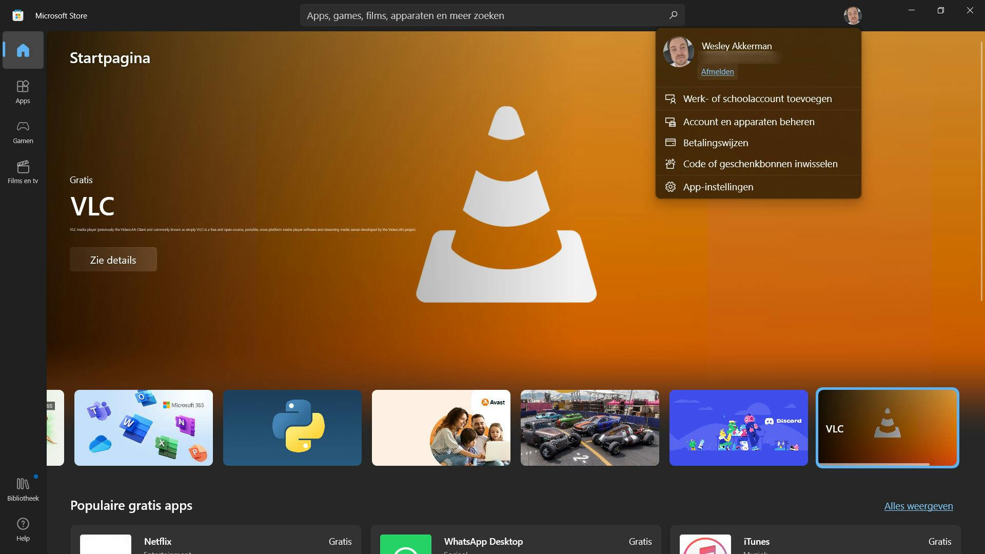 Om gebruik te kunnen maken van de Microsoft Store, dien je in te loggen met je Microsoft-account. Als het goed is, ben je dat al – je moet immers ingelogd zijn bij Windows. Om de downloadknop van de winkel in beeld te krijgen, kun je een keertje uitloggen en opnieuw inloggen bij de Store.