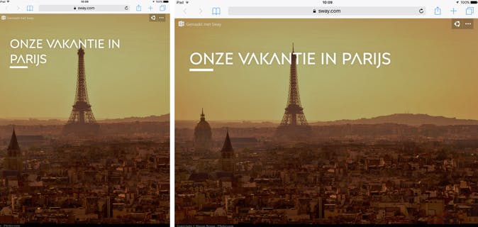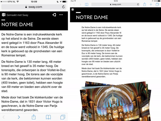 Sway op een iPhone (links) en iPad (rechts). De content past zich automatisch aan.