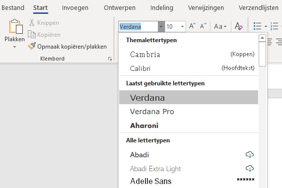 De opmaak van je tekst kun je op ieder moment wijzigen, of dat nu is voordat je iets typt of erna. Als je een bepaalde stijl, lettertype of kleur wilt gebruiken voor een nieuw te typen tekst, zet je de cursor op de plek waar je wilt beginnen. Wil je een nieuw gedeelte een ander lettertype meegeven, dan kies je die uit het blok Lettertype in het lint.