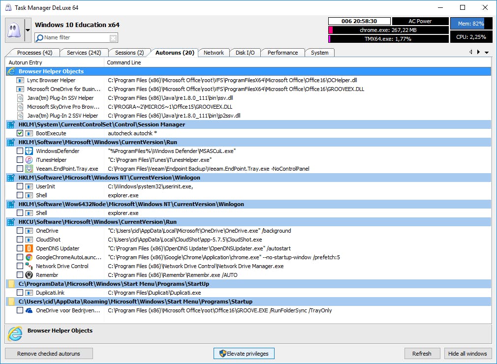 Wie dacht we hiermee alle informatie van MiTeC Task Manager DeLuxe hebben beschreven heeft het mis. Naast het tabblad Processes zijn er nog een reeks andere tabbladen, waaronder Services. Dit geeft je niet alleen een overzicht van alle geïnstalleerde services maar laat je ook toe het opstarttype te wijzigen. Het tabblad Autoruns biedt je een lijst van automatisch startende programma’s waarbij je ook netjes te zien krijgt van waaruit (in het register) die precies worden opgestart. Bij Network lees je de actuele datatransfers af en verneem je ook welke netwerkconnecties allemaal zijn opgezet. En voor wie wil weten hoe druk de processor aan de gang is of hoeveel geheugen er wordt opgeëist, het tabblad Performance vertelt je dat haarfijn.