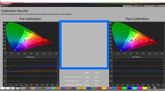 Tot slot creëert Calman je icc-profiel, dat ook de grijsschaal-kalibratie bevat. In de laatste twee stappen kun je het resultaat voor en na kalibratie bekijken aan de hand van de metingen en testbeelden.
