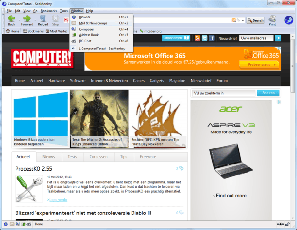 Met SeaMonkey kunt u in principe alles wat u online zou willen doen. Het programma heeft een ingebouwde browser, een ingebouwde e-mailclient, een hulpmiddel voor het bouwen van webpagina's, een rss-lezer en een irc-client (chat). Handig, maar is dat niet allemaal teveel van het goede? Het antwoord is absoluut nee, u krijgt nergens het gevoel overspoeld te worden door de vele mogelijkheden.
