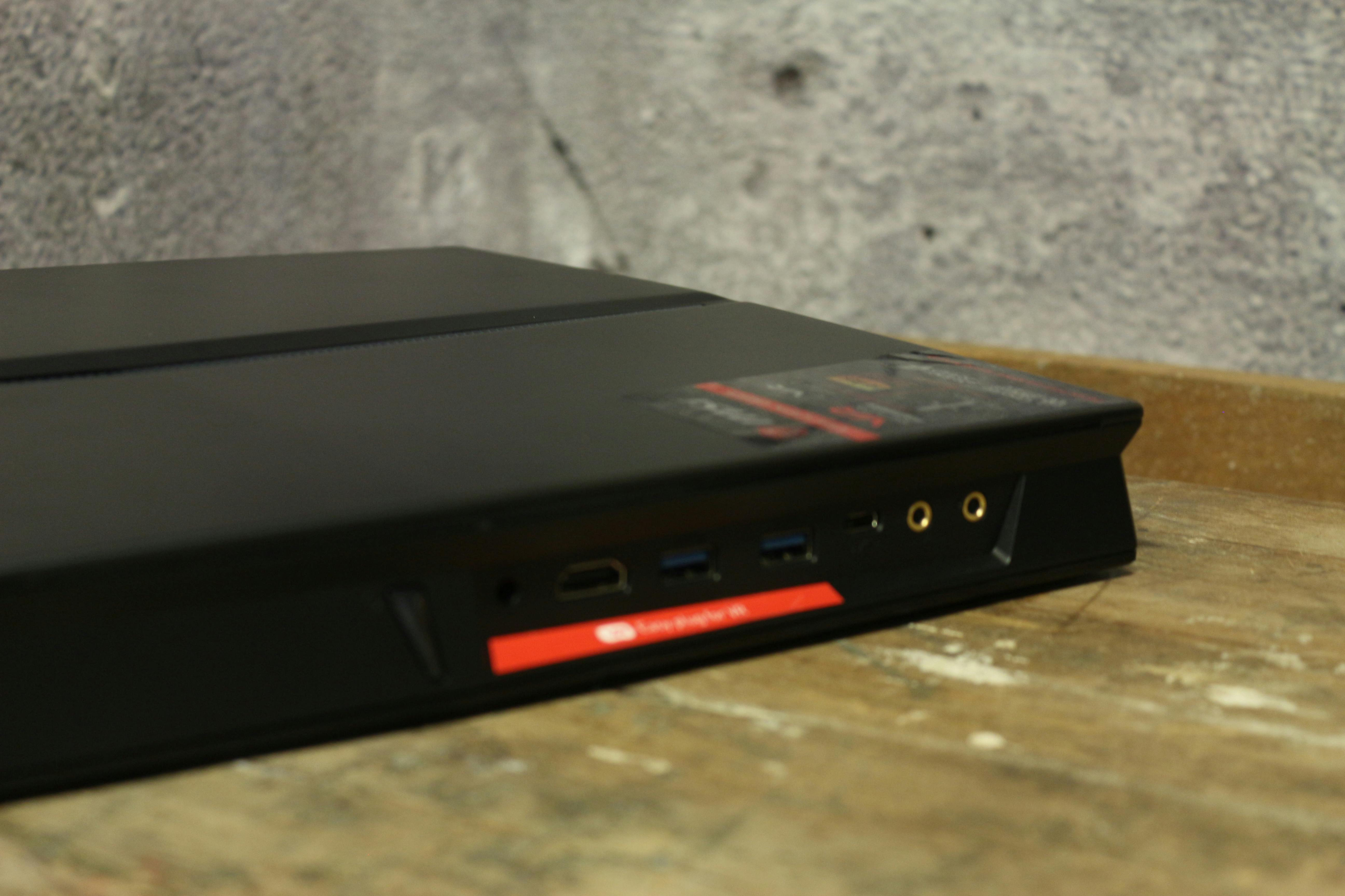 Op de body is aan beide zijkanten ruimte voor een serie poorten. De G25 beschikt over vier gewone usb-poorten, een usb-c-aansluiting, en een poort die dienst kan doen als DisplayPort, Thunderbolt- of extra usb-c-aansluiting. Binnenin zitten een wifi-adapter en een bluetooth-chip, en is ruimte voor een snelle SSD (512GB) en een HDD (1TB).