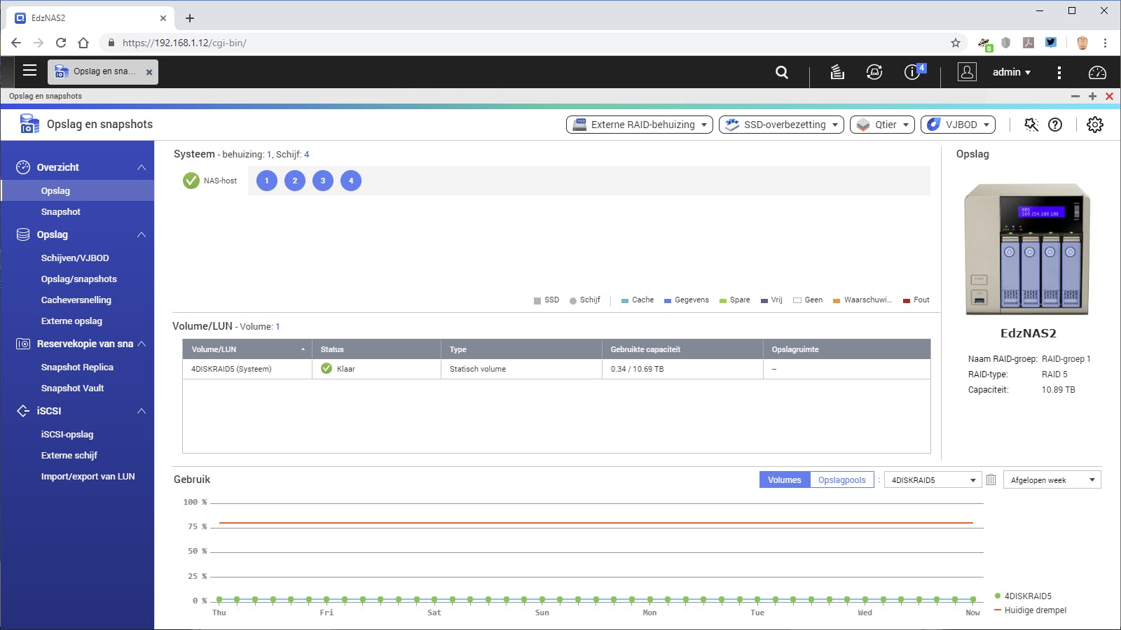 Kies je voor een nas dan zijn de eerste kosten veel hoger. Je moet immers een nas en een of meerdere harde schijven kopen. Maar dat is het dan ook, er zijn daarna geen abonnementskosten meer. Weet je hoeveel opslagruimte je nodig hebt, dan kun eenvoudig uitrekenen na hoeveel maanden of jaren de nas goedkoper is dan de cloud. Bij een goedkope nas zoals een Synology DS218j met twee 6TB Western Digital Red nas-schijven is dat vaak al na anderhalf of twee jaar. Wel zul je na een aantal jaren de nas moeten vervangen: als er geen software-updates meer uitkomen of de hardware faalt. Je kunt erop rekenen dat een nas maximaal acht jaar bruikbaar blijft.