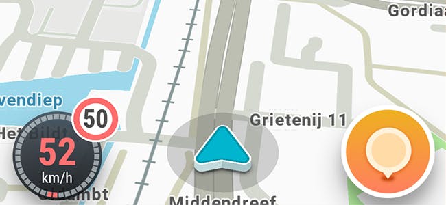 De kracht van Waze zit hem ook in kleine dingen. Wanneer je aan het rijden bent, zie je linksonder hoe hard je rijdt. Nu zie je dat natuurlijk ook op je eigen auto, maar het verschil is dat je auto niet weet wat de maximumsnelheid is, en Waze wél (let op: dit geldt voor standaardsituaties en niet voor incidentele wijzigingen).
