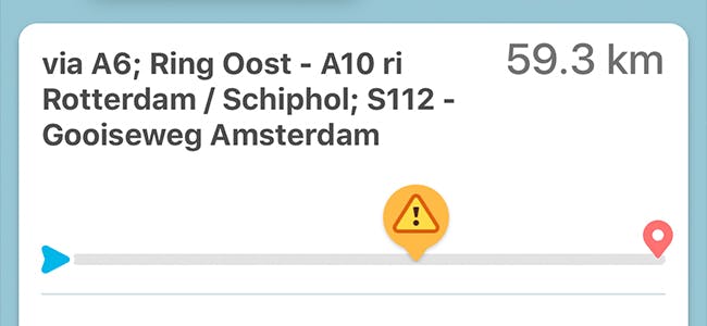 De sociale functies van Waze komen ook van pas bij het plannen van een route. Wanneer een gebruiker heeft aangegeven dat er gevaar is op de route die je plant, dan verschijnt er een driehoekje met een uitroepteken in beeld. Je weet dan dat er op je geplande route iets aan de hand is (dat kan natuurlijk ook een file zijn, een afsluiting enzovoort).