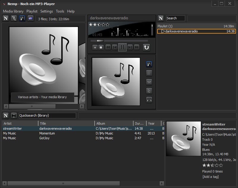 Nemp mag zichzelf dan ‘nog een mp3-speler’ noemen, de audiospeler blijkt echt wel flexibel. Niet alleen kan Nemp met veel audioformaten overweg, er zijn ook nog enkele aardige extra functies ingebouwd, zoals automatische afspeellijsten, het opzoeken van coverart en lyrics, een verjaardagsmodus en een ingebouwde webserver.