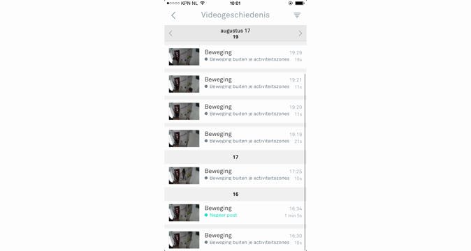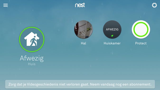 Je kunt met de Nest Cam live meekijken en je krijgt waarschuwingen als er iets aan de hand is. Wat niet standaard kan is video opnemen en later terugkijken. Nest Cam is niet compatibel met opnamesoftware op je pc of NAS, maar kan alleen opnemen in Nests eigen cloud. Hier moet je voor betalen in de vorm van Nest Aware. Je hebt de keuze uit het opnemen van de tien meest recente dagen voor 10 euro per maand of de dertig meest recente dagen voor 30 euro per maand. Dit houdt in dat je afhankelijk van je abonnement op ieder moment tot tien of dertig dagen kunt terugkijken via de cloud. Ligt een moment verder in het verleden, dan is de opname weg. Wel is het mogelijk om binnen de periode van je abonnement een video op te slaan en te downloaden naar je computer. Ook kun je video's delen via sociale media. Dit kan alleen via de website en werkt enigszins omslachtig omdat daar de clips uit de app niet direct als thumbnail getoond worden. Je vindt ze terug als indicaties op de normale tijdlijn en kunt vervolgens zelf een selectie maken om een clip te bewaren. Je hoeft leuke of belangrijke momenten dus niet kwijt te raken, maar je moet daar zelf wel iets voor doen. Op het betalen is één uitzondering: heb je een Nest Protect rookmelder in dezelfde ruimte als de Nest Cam en is er een rookmelding, dan wordt er gratis een filmpje opgenomen tijdens de rookmelding.