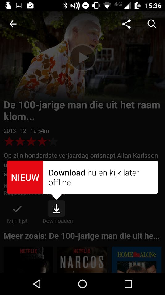 Netflix maakt het mogelijk om films en series te downloaden om ze later offline te kunnen kijken. De langverwachte functie wordt via een update geïntroduceerd in de apps voor Android en iOS.