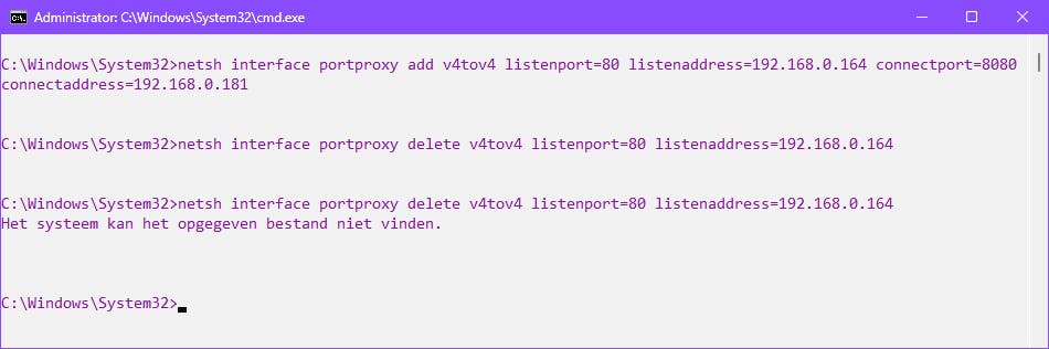 Om deze port-proxy uit te schakelen, gebruik je:
