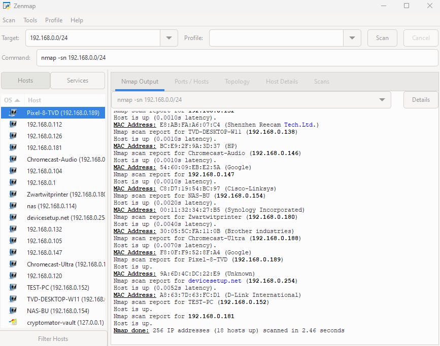 Een netwerkscanner is handig als je snel een overzicht van de aangesloten apparaten wilt (met adressen en services).