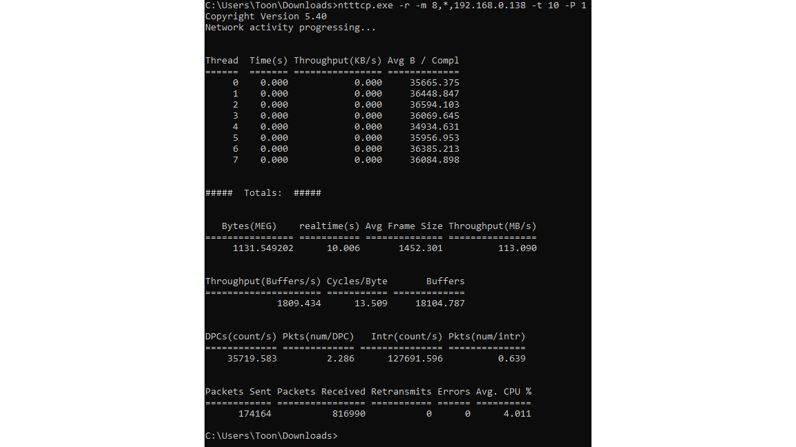 Uiteraard vul je hier het juiste pad naar je ntttcp.exe-bestand in.