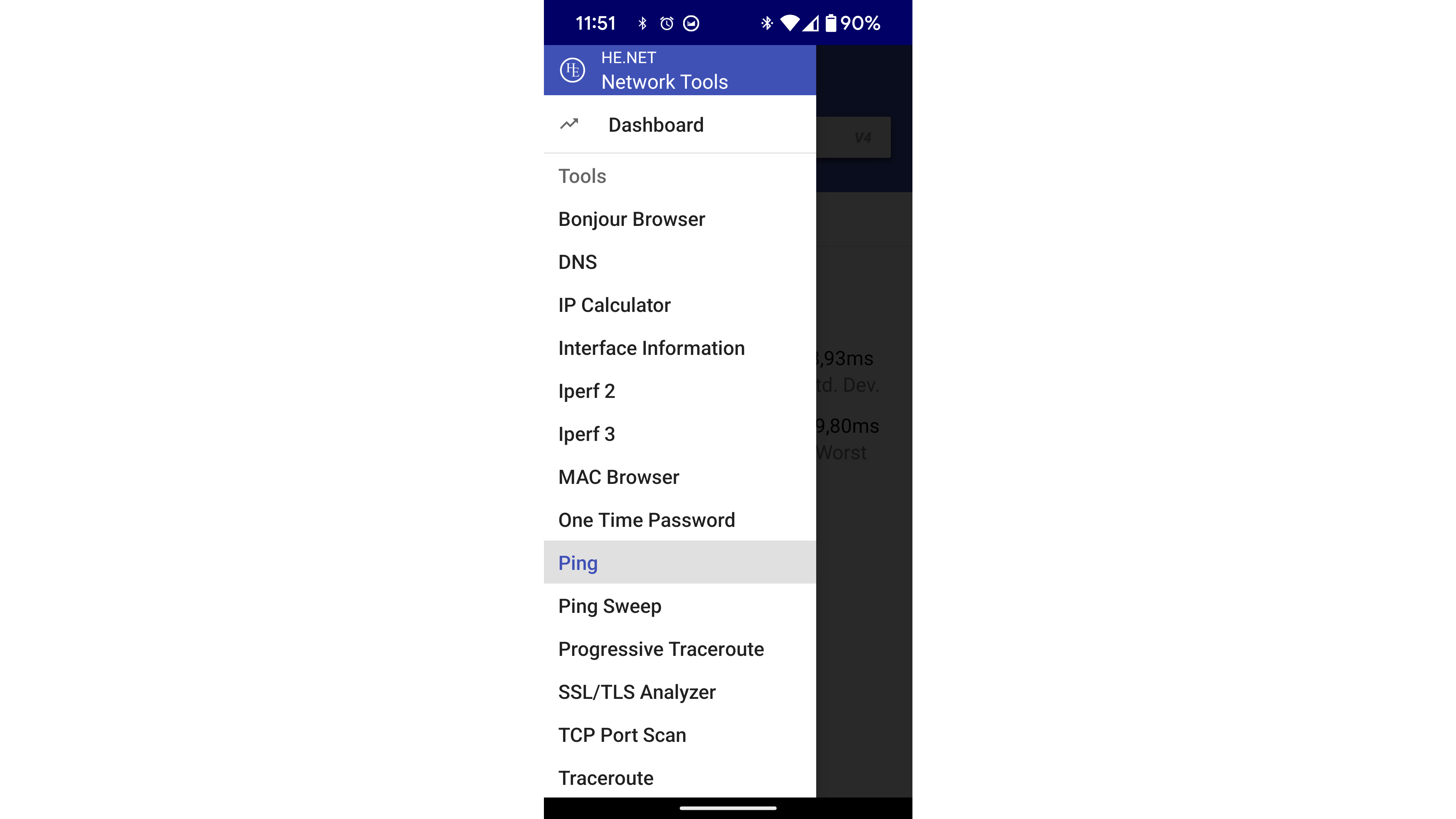Een andere nuttige app is HE.NET, ook beschikbaar voor Android en iOS. Deze app bevat tools zoals iPerf, een poortscanner, ping, traceroute en DNS-lookup.