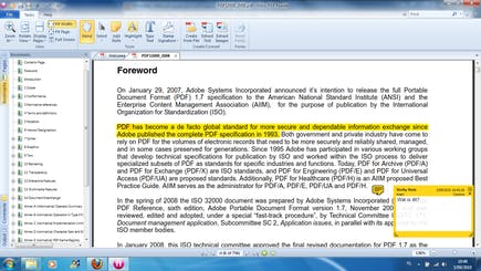 Het eerste dat opvalt aan deze nieuwkomer in de pdf-wereld is het lint dat zo gekopieerd lijkt uit Microsoft Office. Dit zorgt voor een goed overzicht. Gelukkig kunt u het lint eenvoudig inklappen als u al uw schermruimte nodig hebt voor het bekijken van een pdf-document. De rest van de interface is ook eenvoudig in- en uitklapbaar: bovenaan hebt u tabs voor File, Tasks en Help, en links kunt u een zijbalk uitklappen met miniaturen van de pagina’s of bladwijzers.