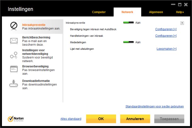 Wie dat wil, kan ook bij Norton AntiVirus en Internet Security 2012 nog diep in de opties duiken en alle beveiliging zelf instellen.