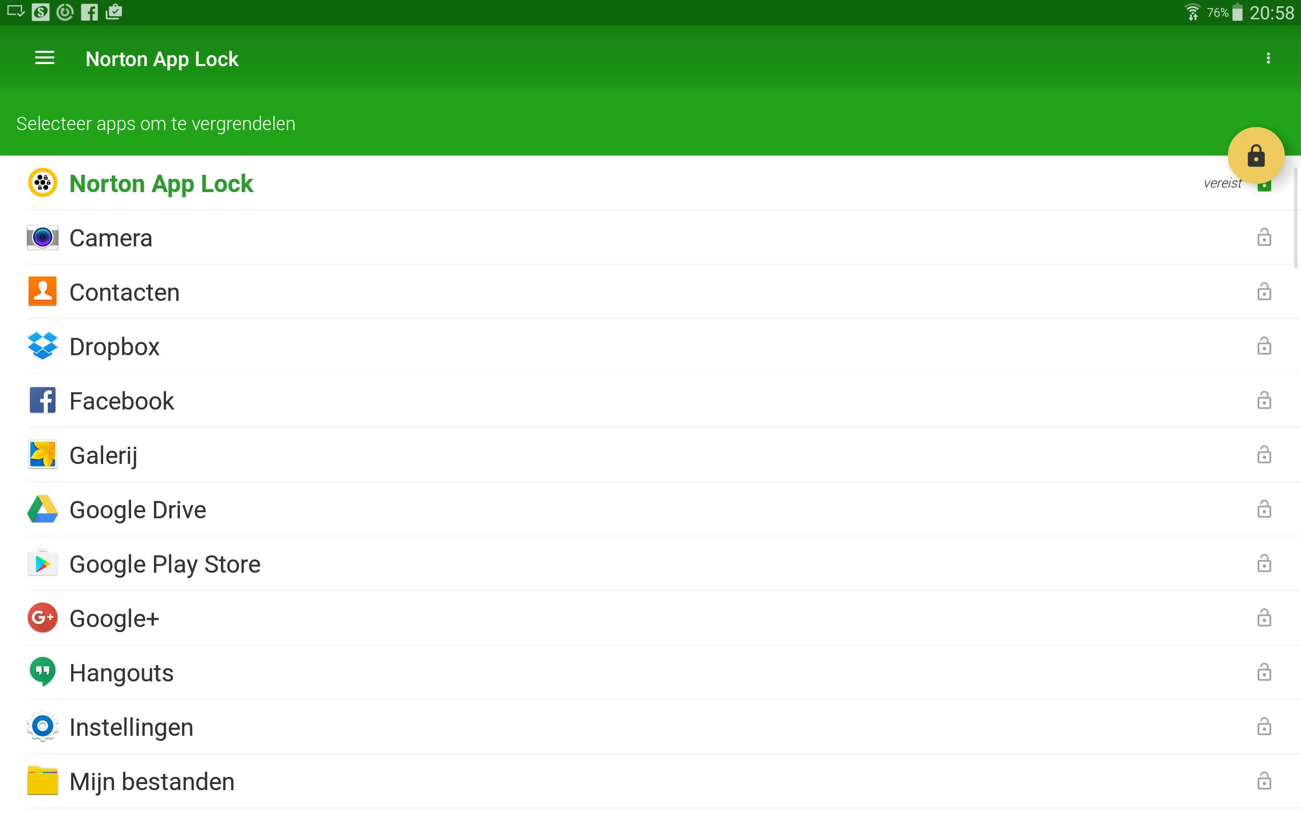 Je smartphone en tablet zijn natuurlijk beveiligd door middel van een pincode of vingerafdruk. maar als het apparaat eenmaal geactiveerd is. kan iedereen er alles mee doen. Het kan daarom handig zijn om sommige apps van een extra beveiligingslaag te voorzien en dat kan met Norton App Lock, een tip van Lex Tillemans. Wanneer je App Lock de eerste keer start, moet je een patroon tekenen om het programma vrij te geven. Daarna kun je apps opgeven die via deze methode beveiligd moeten worden. Als extraatje kan App Lock ook nog een foto maken wanneer een onbevoegde een app probeert te openen. Wel zo veilig.