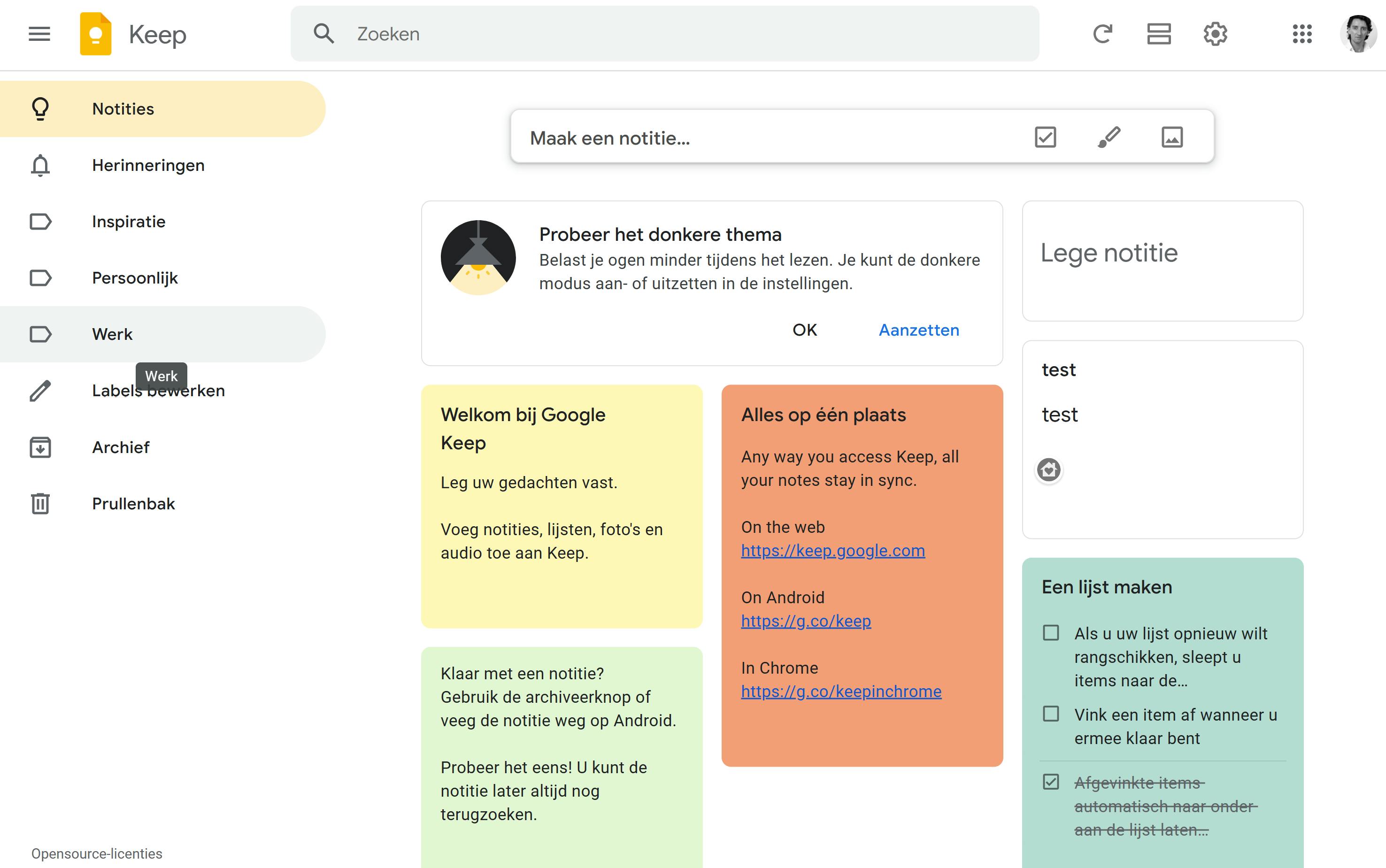 Met Google Keep kun je je aantekeningen maken en deze gestructureerd opslaan. Je vindt de omgeving op https://keep.google.com. Berichten worden in de vorm van post-it-achtige briefjes getoond en met een internetverbinding heb je overal toegang tot je aantekeningen.