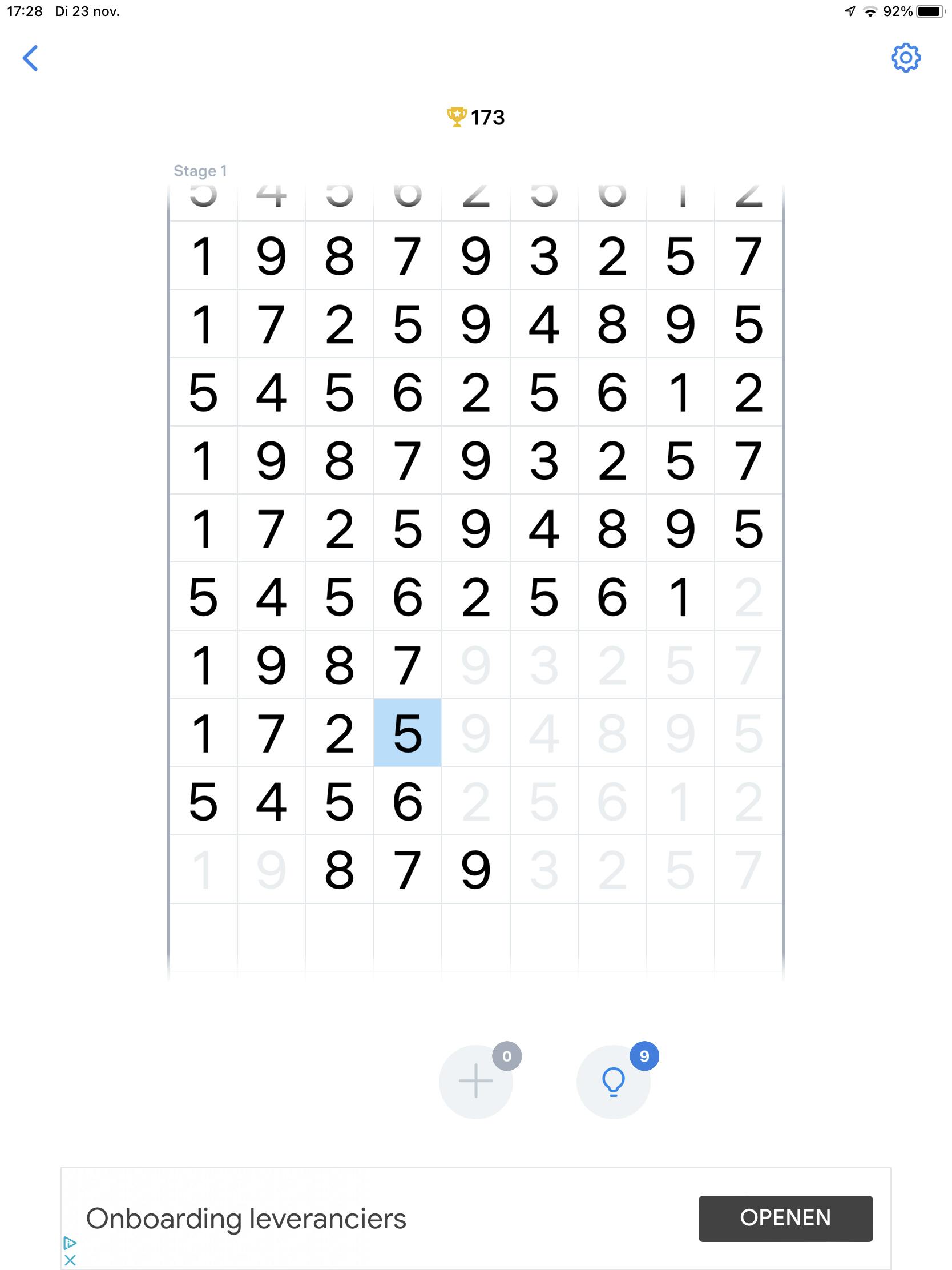 Iedereen die tot tien kan tellen, kan zich vermaken met Number Match, in elk geval wanneer je houdt van puzzelgames. Het gegeven is even simpel als briljant. In een speelveld met daarop de cijfers 1 tot en met 9 moet je paren verwijderen. Dat kan alleen onder bepaalde voorwaarden. Ze moeten ofwel gelijk aan elkaar zijn ofwel samen tien maken. Bovendien mogen tussen paren geen andere getallen staan. Een match kun je horizontaal, verticaal of diagonaal maken. Je zult al snel merken dat het legen van het hele veld erg lastig is. Gelukkig volstaat een bepaalde score om een level af te ronden.