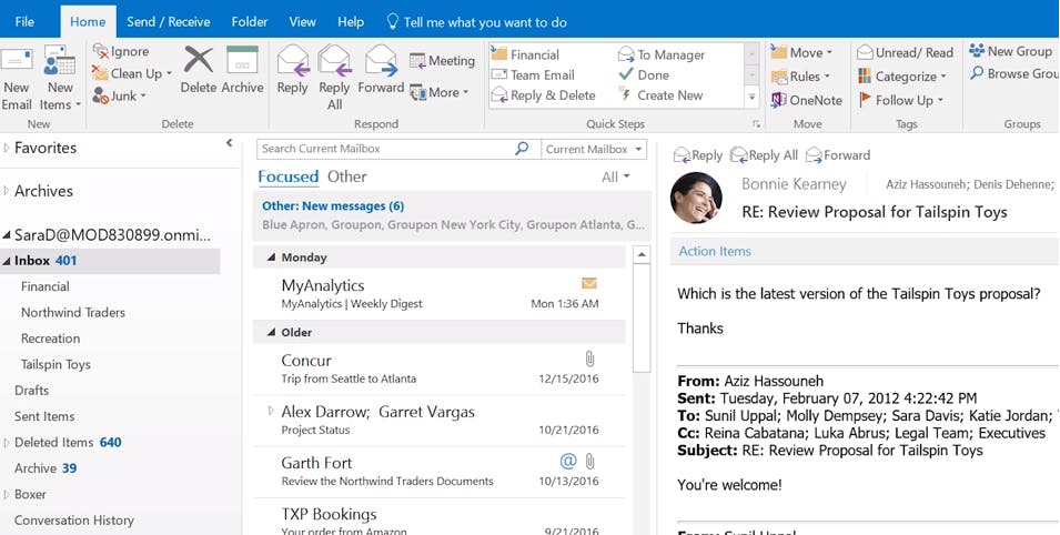 In Outlook is de belangrijkste aanpassing de komst van de Focussed Inbox, 'Postvak in met prioriteit' in het Nederlands. Het mailprogramma maakt dan automatisch onderscheid tussen belangrijke mailtjes en bijvoorbeeld reclame-mails. Je kunt dit als je wilt ook weer uitschakelen.