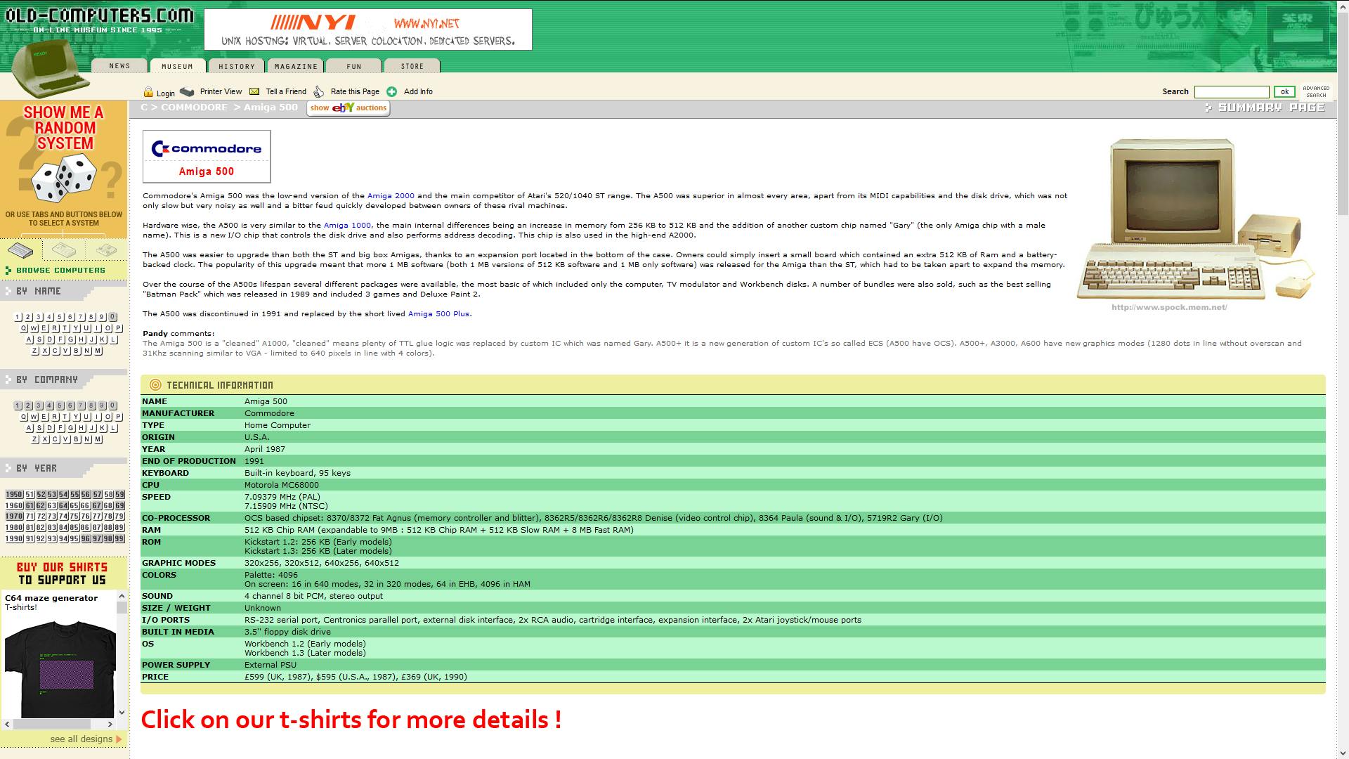 Het verschil tussen de eerste auto met verbrandingsmotor van Benz uit 1885 en het nieuwste model van Mercedes is op het eerste gezicht enorm, maar valt in het niet bij het verschil tussen bijvoorbeeld de MIT Whirlwind-computer uit 1951 en uw nieuwe iPhone. De ontwikkeling van computers is dan ook aanmerkelijk sneller gegaan dan die van auto’s. Wie nieuwsgierig is naar die evolutie kan zijn hart ophalen op de informatieve site www.old-computers.com. Hier kunt u op naam, fabrikant of jaartal bladeren door vele klassieke modellen en zich vergapen aan (de mega-bedragen in) oude advertenties. Smullen!