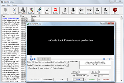 Het is goed mogelijk dat u een ondertitel hebt gedownload die totaal niet gelijk blijkt te lopen met wat u in beeld ziet. Vervelend, maar geen ramp. U hoeft in de meeste gevallen alleen de starttijd van de ondertitels aan te passen, omdat de tijd tussen de gesproken zinnen in de meeste versies gelijk blijft. Een ideaal programma voor het synchroniseren van ondertitels is Subsync. Dit programma wordt helaas door de maker niet meer ondersteund, maar u kunt het nog downloaden via Subsync.
