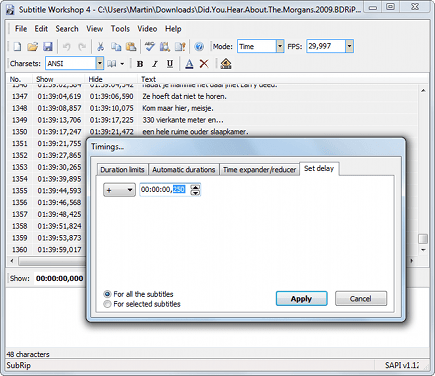 Wilt u credits vervangen, klik dan in Subtitle Workshop simpelweg op Search en vervolgens op Replace. De functie werkt vervolgens precies als in Word (u kunt dus gegevens vervangen door 'niets'). Loopt het geheel halverwege ineens uit sync, scrol dan naar die betreffende ondertitel, klik erop, houd Shift ingedrukt en klik op de laatste titel. Klik met de rechtermuisknop op de selectie, selecteer Timings, Set delay en stel in met hoeveel seconden u de titels wilt vertragen of vervroegen. Selecteer wel For selected subtitles. Klaar? Klik File, Save.