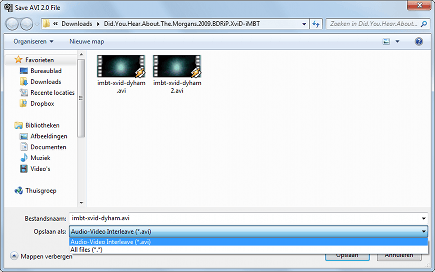 U hebt nu alles gedaan om de ondertitel te integreren binnen het videobestand. Het enige dat nog rest is het opslaan van het bestand. Klik hiervoor op File / Save as. Zorg ervoor dat u bij het uiklapmenu naast Save as: de optie Audio-Video Interleave (*.avi) selecteert. Wilt u de originele video niet overschrijven, selecteer dan een andere opslaglocatie. Houd er rekening mee dat de conversie wat tijd in beslag kan nemen (voor een gemiddelde film een half uur). Het grote voordeel daarna is echter dat u gegarandeerd ondertiteling hebt bij uw video.