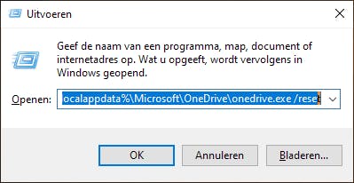 Je kunt de locatie van onedrive.exe ook ingeven gevolgd door de reset-opdracht.