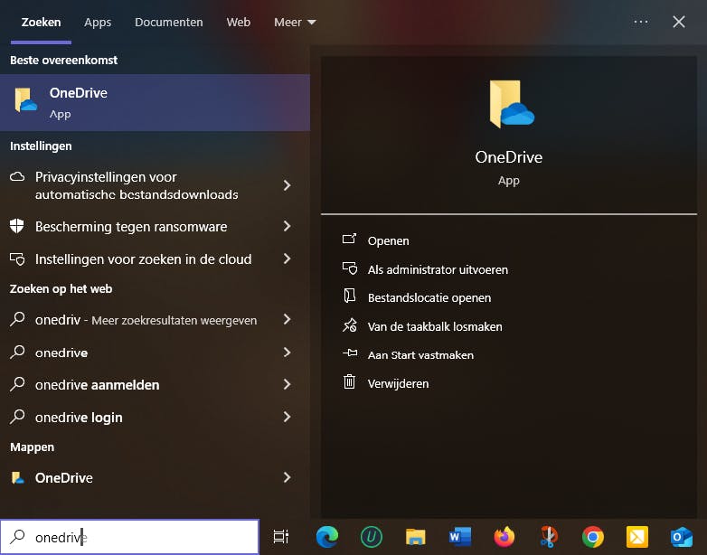 Er verschijnt een pop-up met de vraag of je zeker weet dat je OneDrive wilt afsluiten. Bevestig dit. Zodra OneDrive gesloten is, verdwijnt het pictogram uit het systeemvak. Voordat je OneDrive opnieuw activeert, is het beter om ook de pc opnieuw op te starten. Misschien is OneDrive zelf niet de oorzaak van het probleem en functioneert de dienst daardoor niet goed. Een snelle herstart is in ieder geval de moeite waard om te proberen. Daarna typ je OneDrive in het Windows-zoekvak en selecteer je de app in de zoekresultaten. Zodra de reset is uitgevoerd, probeert OneDrive de inhoud van je map te matchen met de cloudopslag en worden alle benodigde bestanden gedownload of geüpload om een mismatch te compenseren.