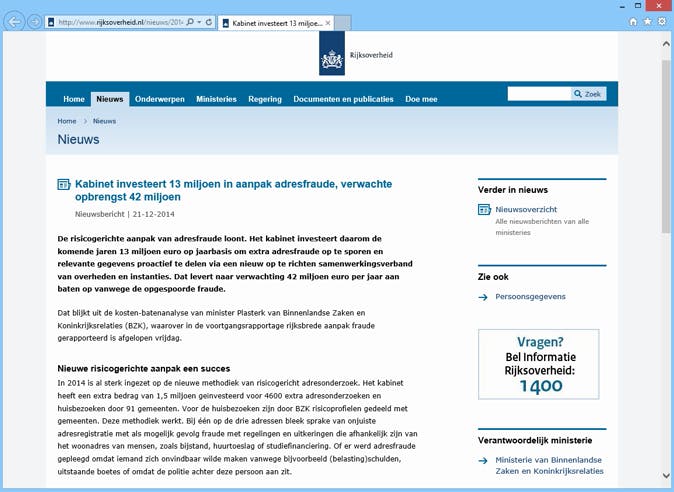 De overheid wil dus meer fraudeurs en terroristen in de kraag grijpen. Hiertoe worden niet alleen de gegevens van mogelijke boeven en fraudeurs nader bekeken, maar de gegevens van álle Nederlanders. En dat terwijl bekend is dat twee derde (!) van de verdachten die uit het 'Big Data-systeem' rollen, uiteindelijk onterecht aangemerkt is. En aan gegevens over burgers is toch al geen gebrek bij de overheid. Sinds er met de 'war on terror' een machtig argument is bijgekomen, wordt iedere mogelijkheid om nog meer gegevens te verzamelen, aangegrepen. Lees ook: Meeste wachtwoorden zijn onveilig.