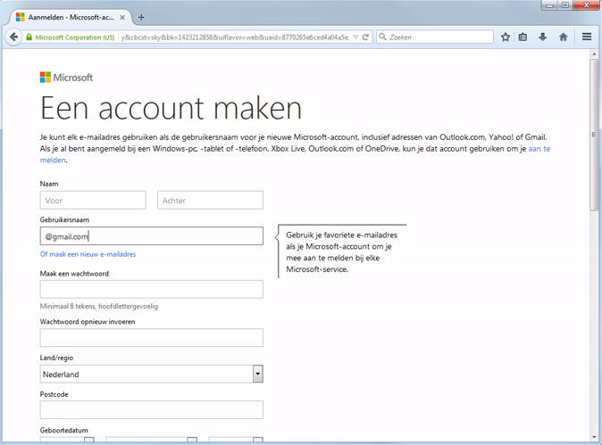 04 Je kunt je favoriete e-mailadres koppelen aan een Microsoft-account, dus ook een Gmail-adres.
