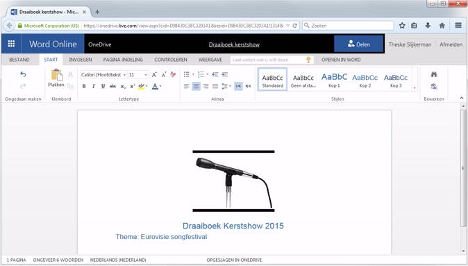 Is er iets in Microsoft Office Online niet mogelijk (bijvoorbeeld het maken van een inhoudsopgave), dan is er in ieder programma de knop OPENEN IN [Programma]. Hiermee open je het document in het desktopprogramma (je moet dan dus wel Office op je computer hebben). Bij het opslaan wordt het document direct weer naar de cloud geüpload. Wil je deze functie in Excel of PowerPoint gebruiken, dan mogen er op dat moment geen anderen in het document werken. Bij ons werkte deze functie overigens niet altijd, met diverse accounts en apparaten kregen we verschillende foutmeldingen.