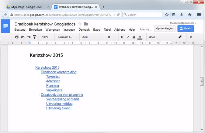 13 In Google Documenten maak je een interactieve inhoudsopgave, helaas wel zonder paginacijfers.