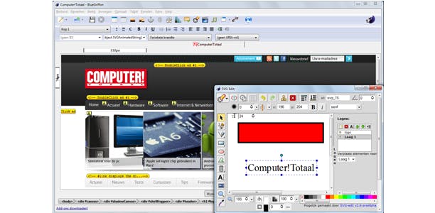 De wysiwyg-modus bereikt dan wel niet het niveau van een (commerciële) tool als WYSIWYG Web Builder, maar het maakt het programma toegankelijk genoeg, ook voor beginnende ontwerpers. Een handige toevoeging is alvast de SVG-editor: je kan hiermee vectortekeningen maken vanuit het programma en deze meteen aan je webontwerp toevoegen. Verder tref je hier onder meer een DOM-explorer en een script-inspector aan, waarmee je met Javascript aan de slag kunt. Helaas komen deze elementen in vensters met een wat aparte ‘besturing’. Er is tevens een voorziening om zonder veel moeite webgebaseerde lettertypes in jouw ontwerp te integreren.
