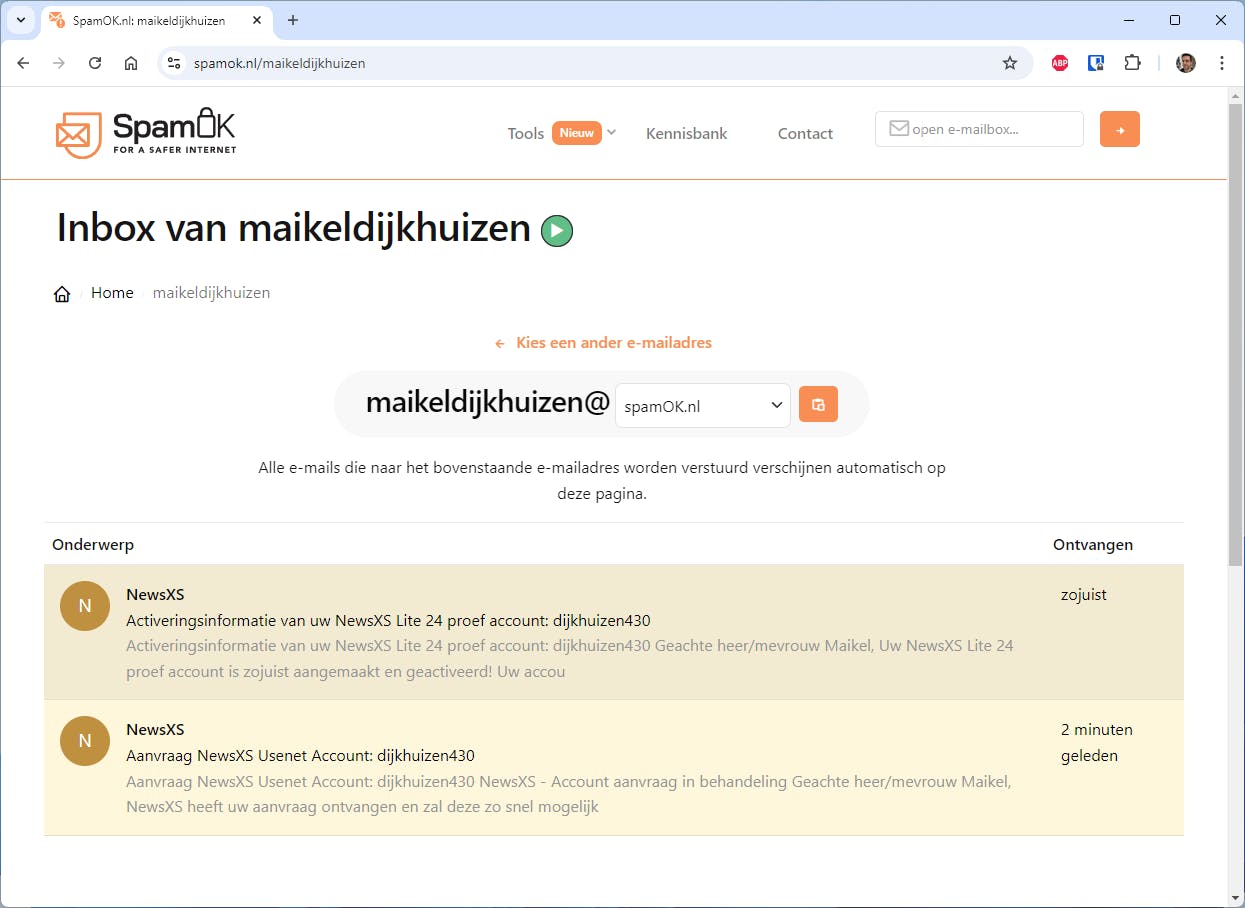 Tijdelijk e-mailadres gebruiken