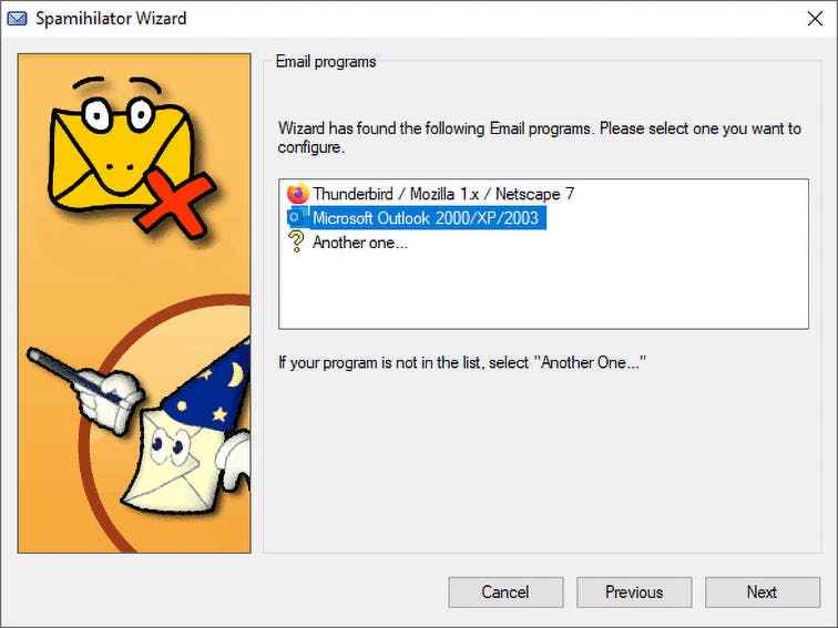 Koppel Spamihilator aan het juiste e-mailprogramma.