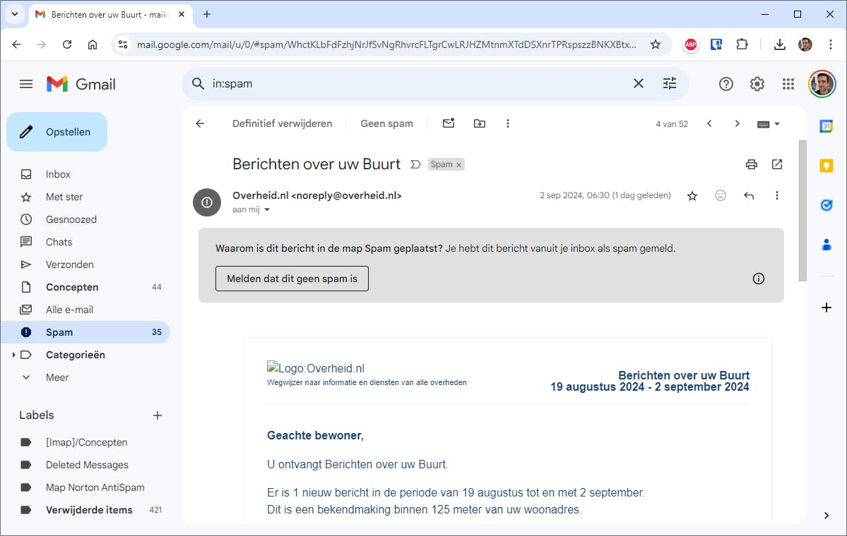 Snuffel regelmatig in de spammap en ga op zoek naar onterechte spam.