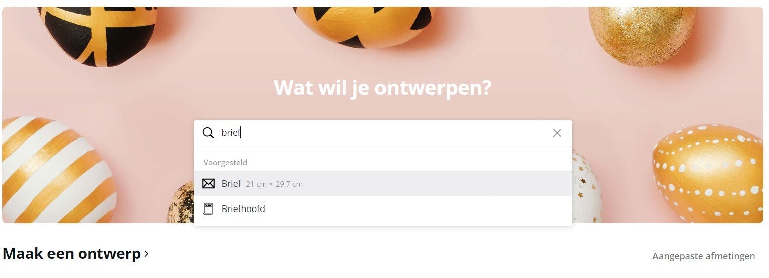 Typ bij de zoekbalk het template in dat je zoekt. In dit geval is dat ‘brief’. Er opent zich vervolgens een nieuw tabblad waarbij je aan de linkerkant allerlei templates ziet. Deze voorbeelden zijn relatief klein, je kunt daarom hier de templates van Canva op een grotere schaal bekijken en er makkelijker doorheen bladeren. Kies er een uit die jou het meest aanspreekt.