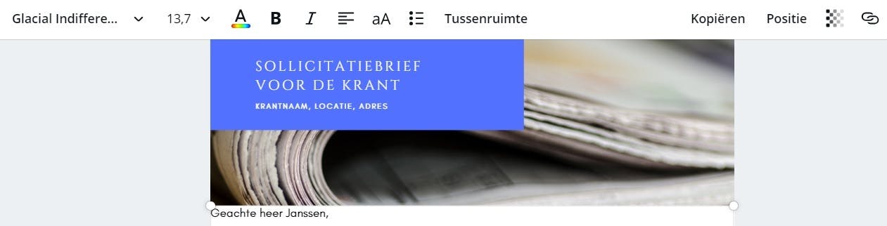 Schrijf de tekst van je sollicitatiebrief eerst in Word zodat je zeker weet dat er geen fouten in zitten en dat dit de tekst is die je hebben wil. Je kunt deze tekst later kopiëren en plakken naar Canva.