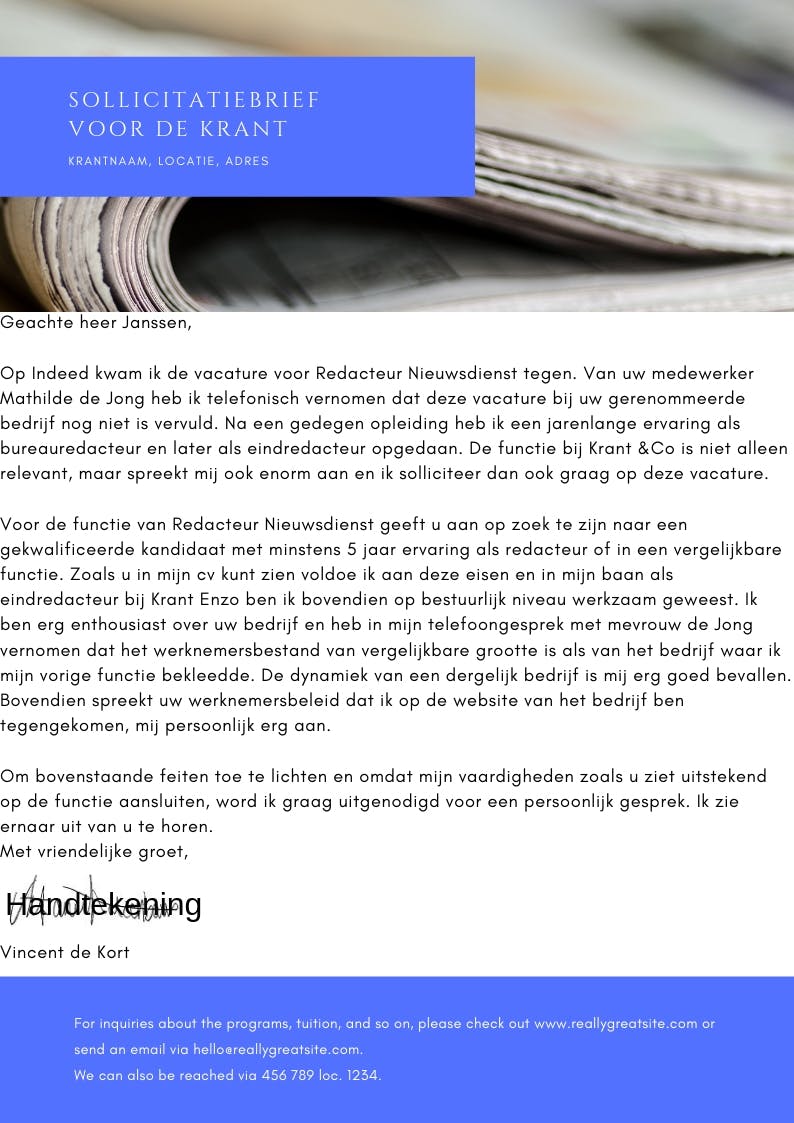 En ziedaar, de sollicitatiebrief is helemaal klaar voor gebruik. Het spreekt voor zich dat je in Canva ook je CV kan maken. Hierdoor kun je de brief en je CV mooi op elkaar afstemmen wat opmaak betreft.