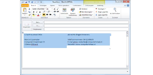 Je kunt de handtekening gewoon in een Outlook-bericht vormgeven, dat werkt namelijk bijna precies zoals in Word.