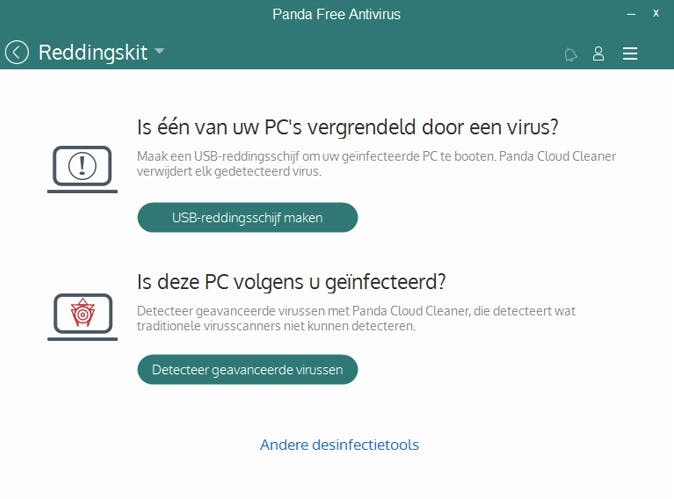De interface van Panda Free Antivirus is overzichtelijk en het programma is volledig Nederlandstalig. Enkel pro-functies zijn wel aanwezig en brengen je wanneer je deze toch selecteert, direct naar de Panda webshop. De hoeveelheid reclame is beperkt tot een banner en die is minder geslaagd, een popup bij het starten van Windows die helaas met de muis gesloten moet worden. Panda scoort al jaren erg goede resultaten in de verschillende antivirustests en heeft daarbij op onze pc nauwelijks impact op de prestaties. De beveiligingsproducten van Panda gebruiken cloudtechniek, zonder internetverbinding zijn ze veel minder bruikbaar, tegelijk is het risico op besmetting dan ook veel lager. Voor geval je pc toch besmet raakt kun je een reddingsdisk of usb-stick klaar maken voor offline scannen. De hiervoor gebruikte Panda Cloud Cleaner laat zich ook vanuit Panda Free Antivirus als extra add-on installeren. De instellingen kunnen met een wachtwoord worden afgeschermd.