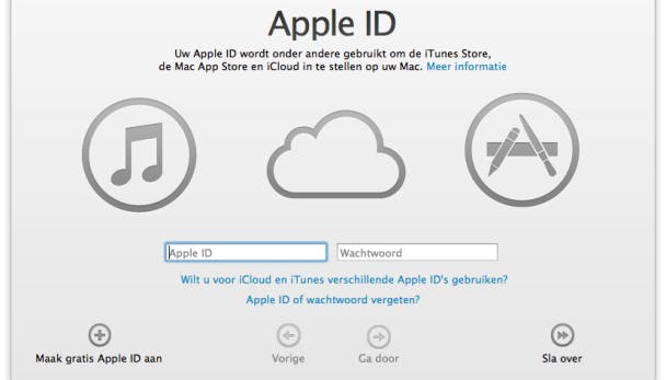 Doorloop de installatiestappen en start je computer opnieuw op. Omdat Apple ervan uitgaat dat je al een Apple-product hebt en zodoende ook over een Apple ID beschikt, log je na opstarten in met je Apple ID die je in de eerste stap hebt aangemaakt.
