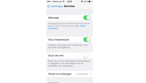 Op je iOS-apparaat ga je naar Instellingen / Berichten om de schuif achter iMessage aan te zetten. Wil je een melding ontvangen als de ontvanger je bericht heeft gelezen, zet dan de schuif achter Stuur leesbewijzen ook aan.