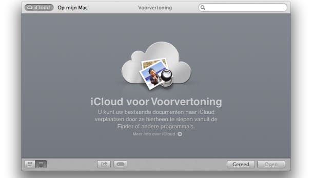 Op je Mac is iCloud in diverse programma's geïntegreerd. In veel programma's vind je bij het openen een optie om documenten vanaf iCloud te laden. Je kunt vanuit een programma ook bestanden opslaan in iCloud.