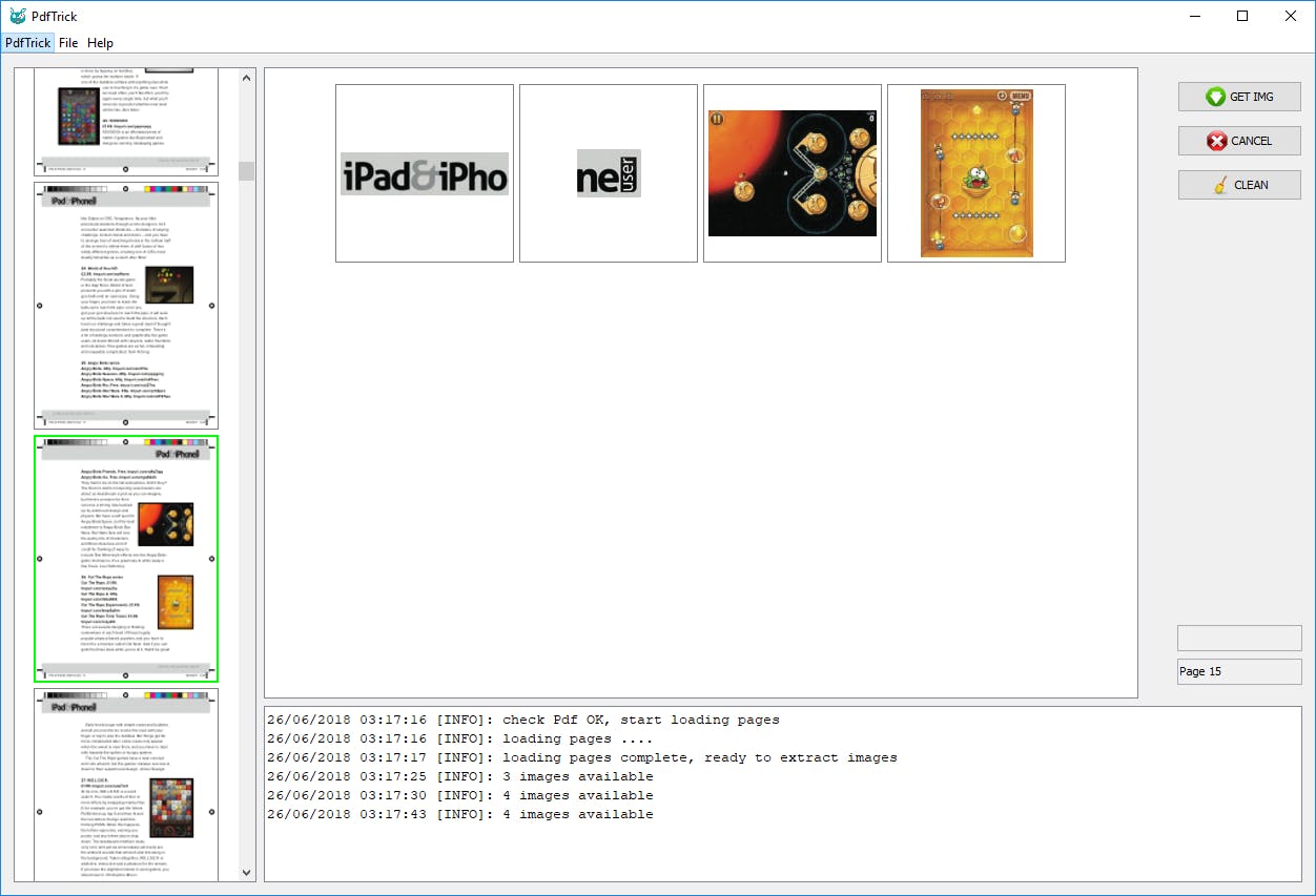 In een grijs verleden (Voor Nop 2014/19, om precies te zijn) bespraken we PDF Image Extraction Wizard, waarmee je alle afbeeldingen volautomatisch uit een bepaald paginabereik van een pdf-document kunt halen. Een fantastisch programma voor dat doel, maar wil je slechts een handvol verspreide afbeeldingen, dan is het niet de meest ideale oplossing. Dan ben je meer gebaat bij PdfTrick. Sleep een pdf-bestand naar het venster van dit programma en je kunt vervolgens per pagina en per afbeelding aangeven of je een plaatje wilt opslaan. Let op: PdfTrick vereist Java Runtime Environment.