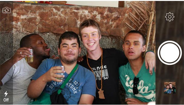 Ook in de praktijk blijkt dit idee bijzonder goed te werken. Zo zie je dat de app geduldig afwacht tot iedereen in de foto voldoet aan de voorwaarden van de perfecte foto. Wordt hieraan voldaan dan reageert Perfect Shot direct door een foto te nemen. Perfect Shot geeft niet aan of er limitaties zijn voor het maximaal aantal personen in de foto, maar ik heb de app met succes kunnen testen bij een groep van vier personen. Opvallend hierbij is dat het niet uitmaakt voor de app of je nu aan het schaterlachen bent of een subtiele glimlach laat zien. In alle gevallen lijkt Perfect Shot precies te weten wanneer er een foto moet worden gemaakt.