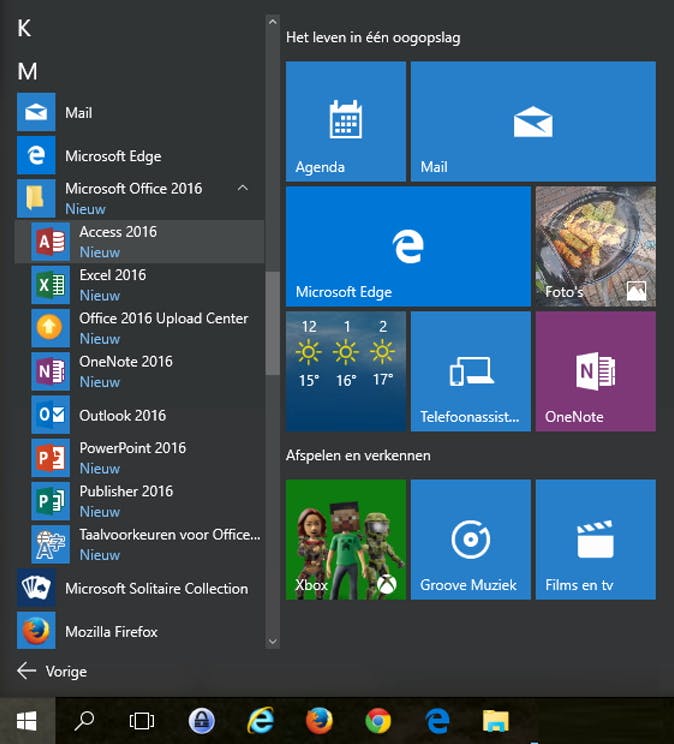 Was Windows 8 jouw eerste Windows, dan heeft Microsoft met Windows 10 iets nieuws voor je. Een menu waarin je alle programma's kunt vinden, plus alle opties om Windows aan jouw voorkeuren aan te passen. Dat menu heet Start en je opent het door met de muis op het Windows-logo linksonder in beeld te klikken. Gebruik je liever een toetsenbord? Druk dan de Windows-toets in die je linksonder vindt. Was Windows 8 niet jouw eerste Windows, dan is dat startmenu zeker geen onbekende voor je. Onthoud dan vooral dat het startmenu van Windows 10 een combinatie is van het populaire menu uit Windows 7 en de vernieuwing in Windows 8. Van de laatste waren met de komst van Windows 8.1 de echt ruwe kantjes al verdwenen en nu zijn ook de laatste hobbels gladgestreken.