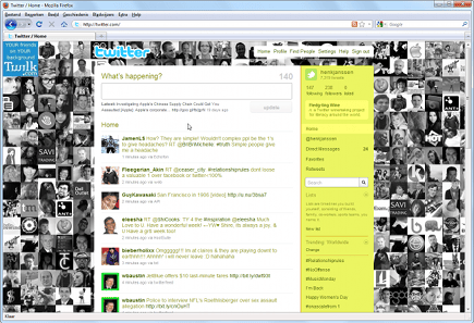 Een leuk idee is om een collage van de foto’s van uw followers te tonen op de achtergrond van uw Twitterpagina. Dit gaat heel eenvoudig, ga naar twilk, klik op Get Started! en klik op de volgende pagina op Allow (als u nog niet bent ingelogd op Twitter, moet u dat eerst even doen). Hierna is het een kwestie van even wachten tot Twilk klaar is met het verzamelen van de benodigde gegevens. Als dit gebeurd is, kunt u de achtergrond instellen door op Use Background te klikken. Ook kunt u meer opties instellen, door op Edit te klikken. Hier kunt u bijvoorbeeld aangeven dat u alleen uw followers of juist alleen de mensen die u volgt te gebruiken, of alleen zwartwitfoto’s te gebruiken. Bent u tevreden met hoe het eruit ziet? Klik dan op Use Background. Het enige nadeel is, dat er linksboven wel een kleine advertentie te zien is. Als u dit heel vervelend vindt, kunt u ervoor kiezen om te betalen voor de dienst. Dit kost vijf dollar per maand, maar dan wordt de achtergrondafbeelding wel elke dag geüpdatet met foto’s die gewijzigd zijn, kunt u zelf een logo toevoegen en kunt u aangeven wie er wel of juist niet opgenomen moet worden in de achtergrondcollage.