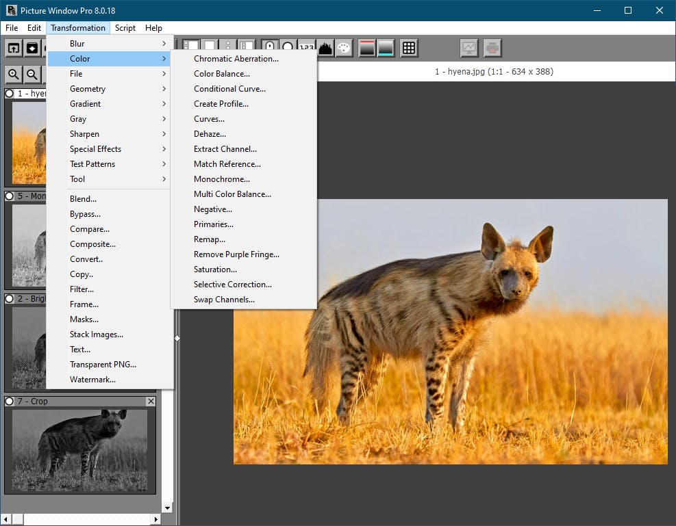 Picture Windows Pro telt zowat honderd verschillende bewerkingen (transformaties genoemd) en elke transformatie stuur je vanuit een verplaatsbaar venster aan.